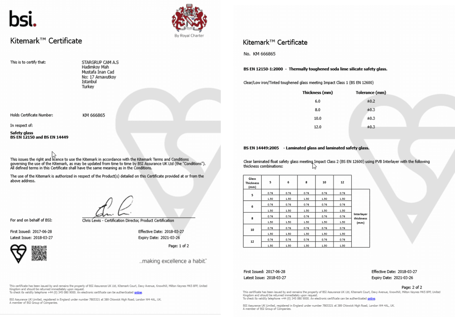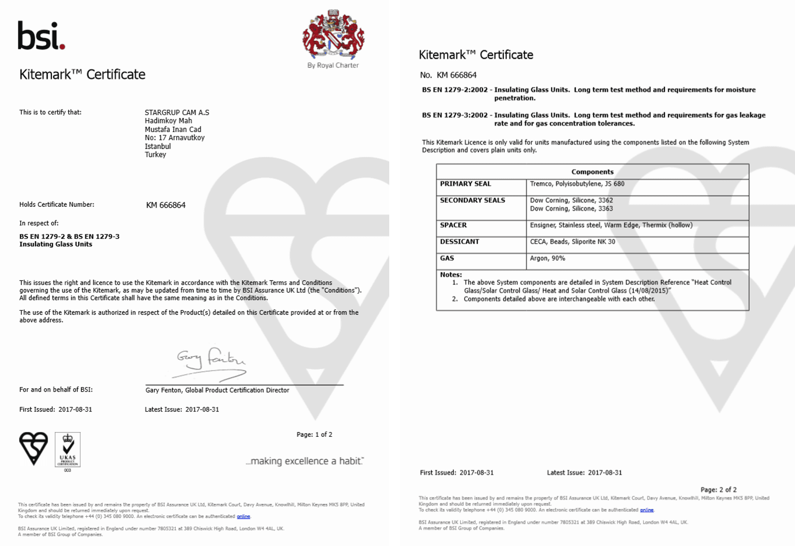 Kitemark Isıcam Üniteleri ve BSI Kitemark Emniyet Camı